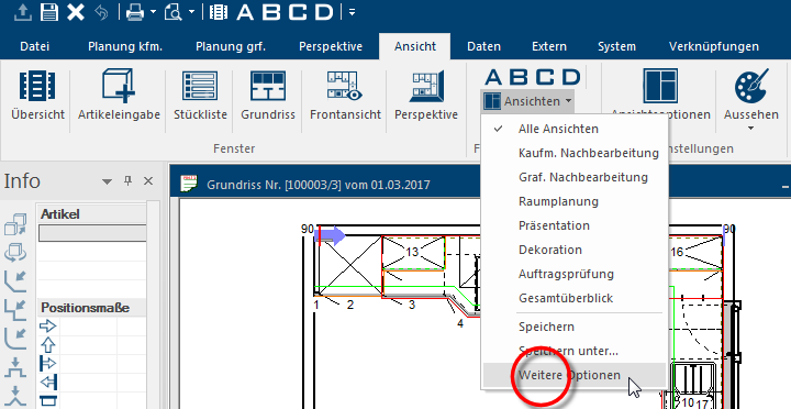 - Um den Dialog zu öffnen, klicken Sie auf den Eintrag Ansicht und wählen aus dem Auswahlmenü den Eintrag Weitere Optionen aus.