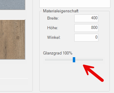 Via de Materiaalkeuze dialoog en in de Systeemopties (Standaard afbeeldingen) kan nu de Glansgradatie voor 3D texturen van Ramen en Deuren via een schuifregelaar individueel worden ingesteld. Dit heeft zowel uitwerking op de weergave van de 3D texturen in de perspectieven als ook in CARAT emotion. |