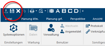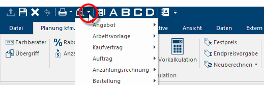 Boven de snel toegang aan de bovenste rand van de menubalk kunt u vaak gebruikte functies plaatsen, zodat u te allen tijde direct op deze functies kunt teruggrijpen, onafhankelijk van het tabblad Sommige dialoog venster zijn zo veelomvattend dat de functies in sub-sectoren worden gedeeld. Deze sub-sectoren worden meestal in het bovenste gedeelte van de dialoog getoond en kunnen worden bereikt door te klikken op de betreffende tekst. dat op dat moment geopend is. Als standaard zijn in de snel toegang reeds de functies Commissie openen, Commissie opslaan, Commissie sluiten, Ongedaan maken, Printen, Print voorbeeld, het Commissie overzicht, en de Aanzichten A tot en met D beschikbaar.