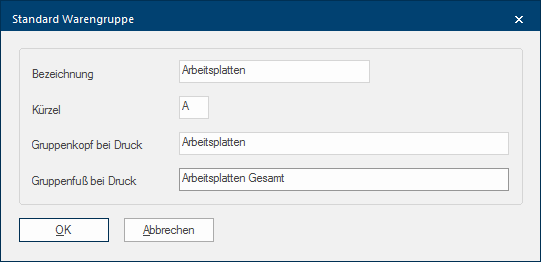 Hier wordt de door u gegeven afkorting voor de productgroep getoond. De afkorting is voor de toewijzing in de leveranciergegevens nodig en dient daarom uniek te zijn. |