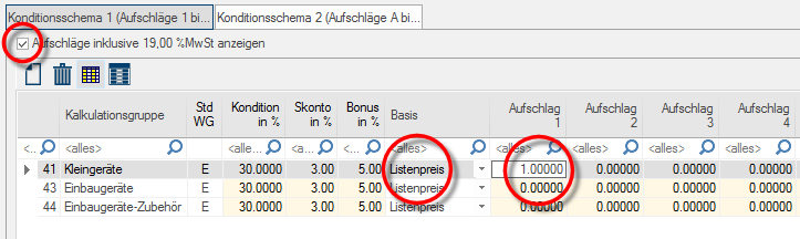 Indien in de catalogigegevens als lijstprijs een onvoorwaardelijke prijsaanbeveling inclusief BTW, dus een bruto-verkoopprijs is ingevoerd, zult u deze meestal onveranderd in uw offerte overnemen.