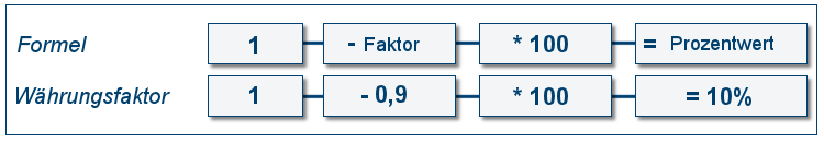 Om een wisselkoers of een valutafactor in de conditiecalculator in te kunnen voeren, moet de betreffende factor eerst in een percentagewaarde worden geconverteerd. Daarvoor is een eenvoudige formule voldoende: