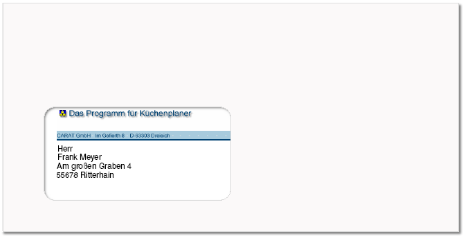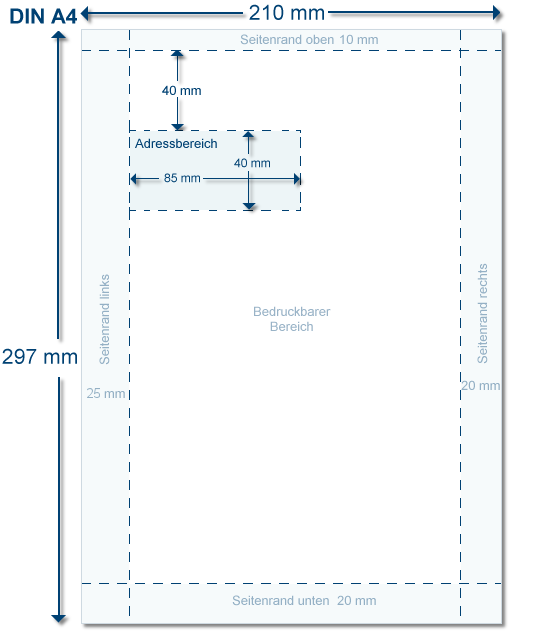 Voor het adresgedeelte kunt u, gebaseerd op DIN 5008, een hoogte van 40 mm en een breedte van 85 mm aanhouden, zodat het complete adres optimaal in het venstergedeelte van een vensterenveloppe past.
