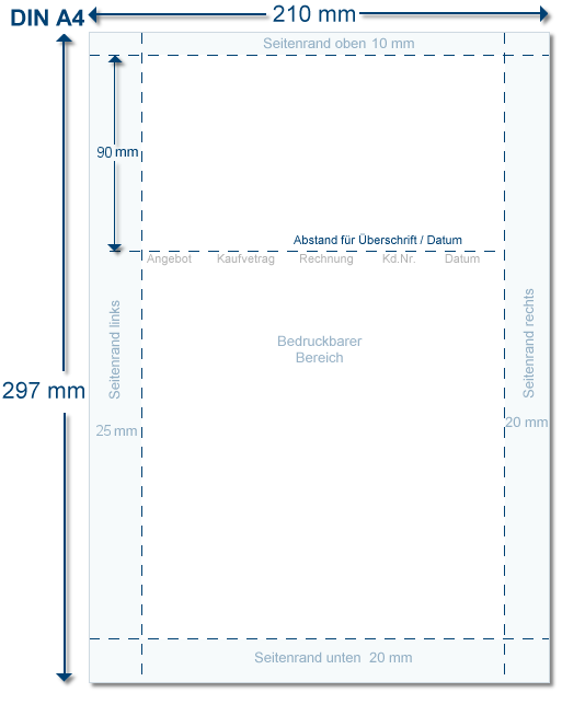 Op basis van het bladformaat DIN A4 willen we u de instellingsopties voor de paginamarges nader toelichten
