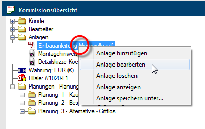 - Indien u met de rechter muisknop op een bijlage klikt wordt een contextmenu In bijna alle Windows-programma´s wordt door het klikken met de rechter muisknop een keuze menu geopend, waarin de commando's staan die zinvol zijn voor de volgende werkprocessen. geopend, met die functies die voor de gekozen bijlage ter beschikking staan.