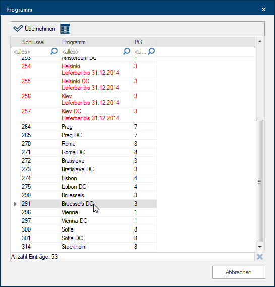 - Dubbelklik Een dubbelklik word onder andere voor het openen van bestanden en programma´s of voor het starten van een actie, een beveel gebruikt. Klik twee keer snel achter elkaar met de linker muisknop als de muiswijzer op het gewenste symbool staat. De muiswijzer mag gedurende het tweemaal klikken niet verplaatst worden. om een programma uit te kiezen met de linker muisknop of op de programmasleutel, de programmanaam of de prijsgroep. Afhankelijk van de optie Het woord optie (Latijn: optio = vrije wil) betekend in de informatica een keuzemogelijkheid. In ons geval gaat het daarbij steeds om de ronde keuzevelden. waarop u hebt geklikt, wordt vervolgens de programmalijst overeenkomstig gesorteerd geopend.