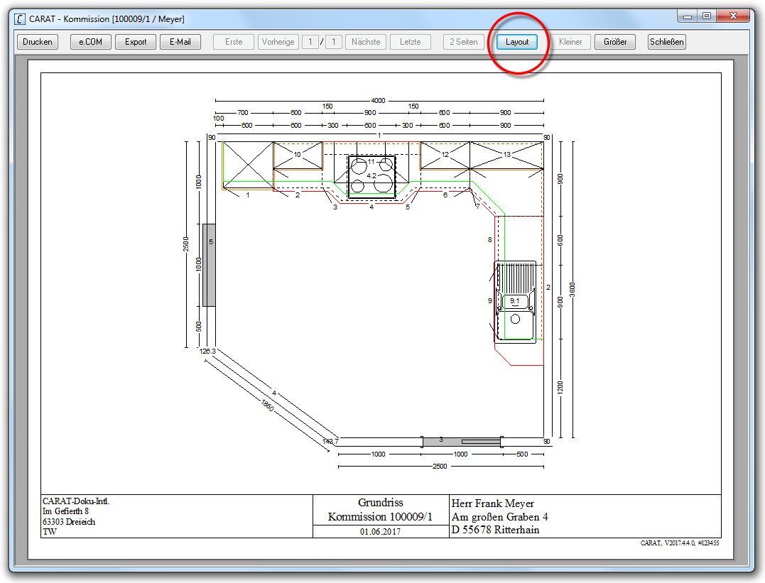 - Kies daarvoor, via de grafische export van CARAT, de maat 3508 x 2480 Pixel uit.