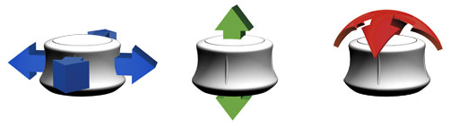 De 6 vrije draairichtingen bieden de mogelijkheid tot het positioneren van een model of een scène in een driedimensionale ruimte met één enkele intuïtieve, vloeiende beweging.
