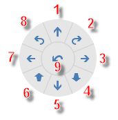 De verschillende Sturingsopties werken door op de Pijltjestoets te tikken of door de toetsencombinaties Ctrl + Pijltjestoets, Shift + Pijltjestoets en Ctrl + Shift + Pijltjestoets te gebruiken.